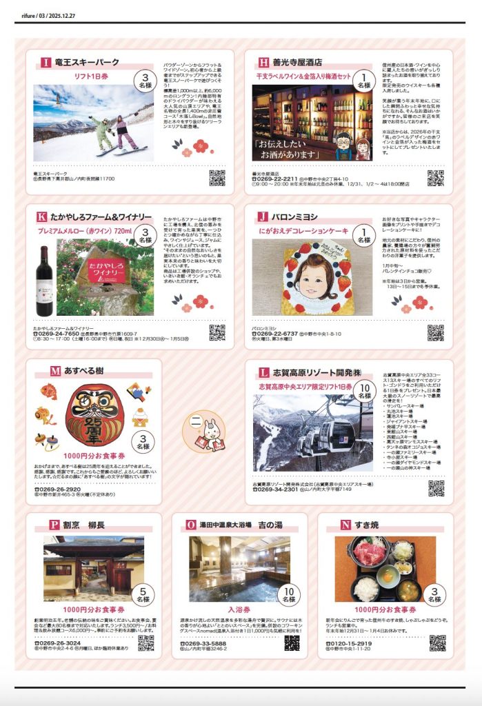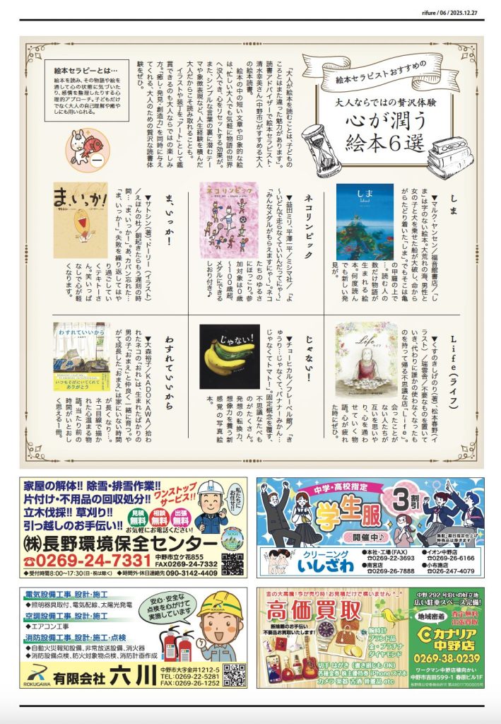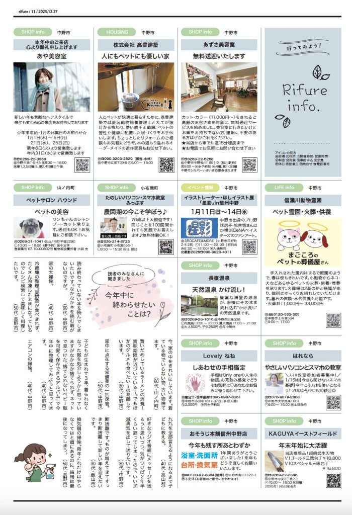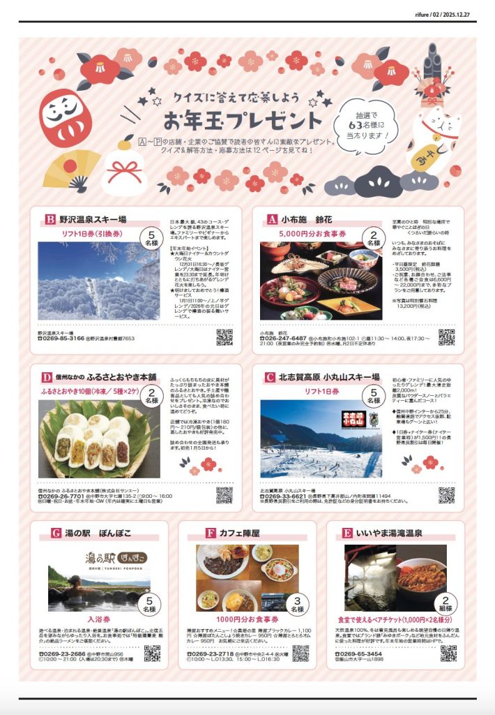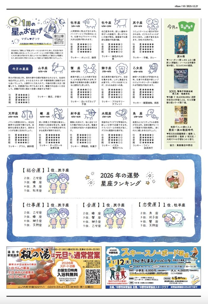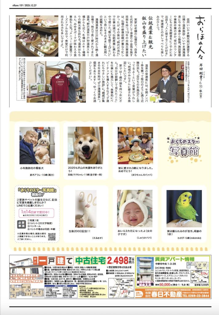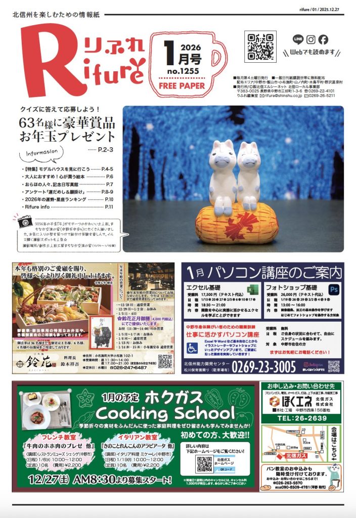 りふれ1月号 本日発行 2025 12/26 りふれ最新号 2025-12-26 北信州を楽しむための情報紙「りふれ」は第4土曜日に日刊紙といっしょにフリーペーパーとしてお届けしています。お近くのスーパー、コンビニエンスストアなどにも配置しています。 りふれ最新号 URLをコピーしました! りふれ12月号 本日発行 この記事を書いた人 rifurelocal 関連記事 りふれ12月号 本日発行 2025-11-23 りふれ11月号 本日発行 2025-10-26 りふれ10月号 本日発行 2025-09-27 りふれ9月号 本日発行 2025-08-24 8月号 本日発行 2025-07-27 7月号 本日発行 2025-06-28 6月号 本日発行 2025-05-25 5月号 本日発行 2025-04-27